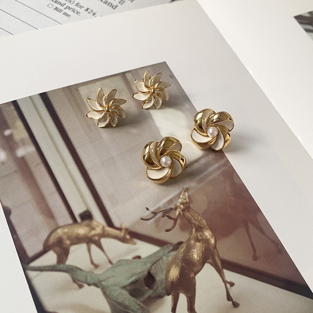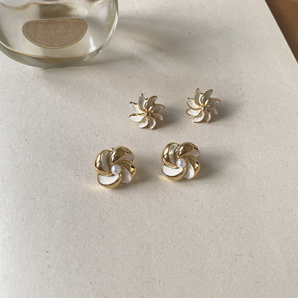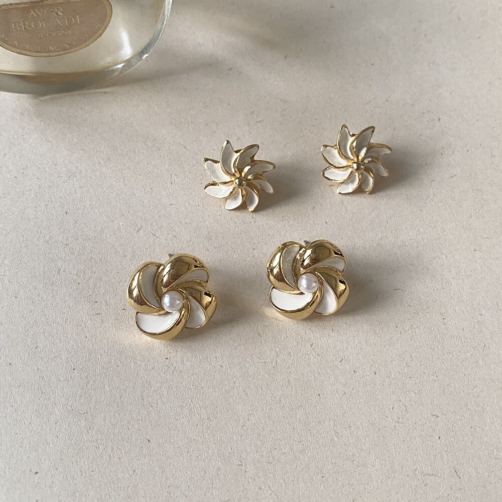 은은한 크림 컬러 빈티지 플라워 이어링 2가지.