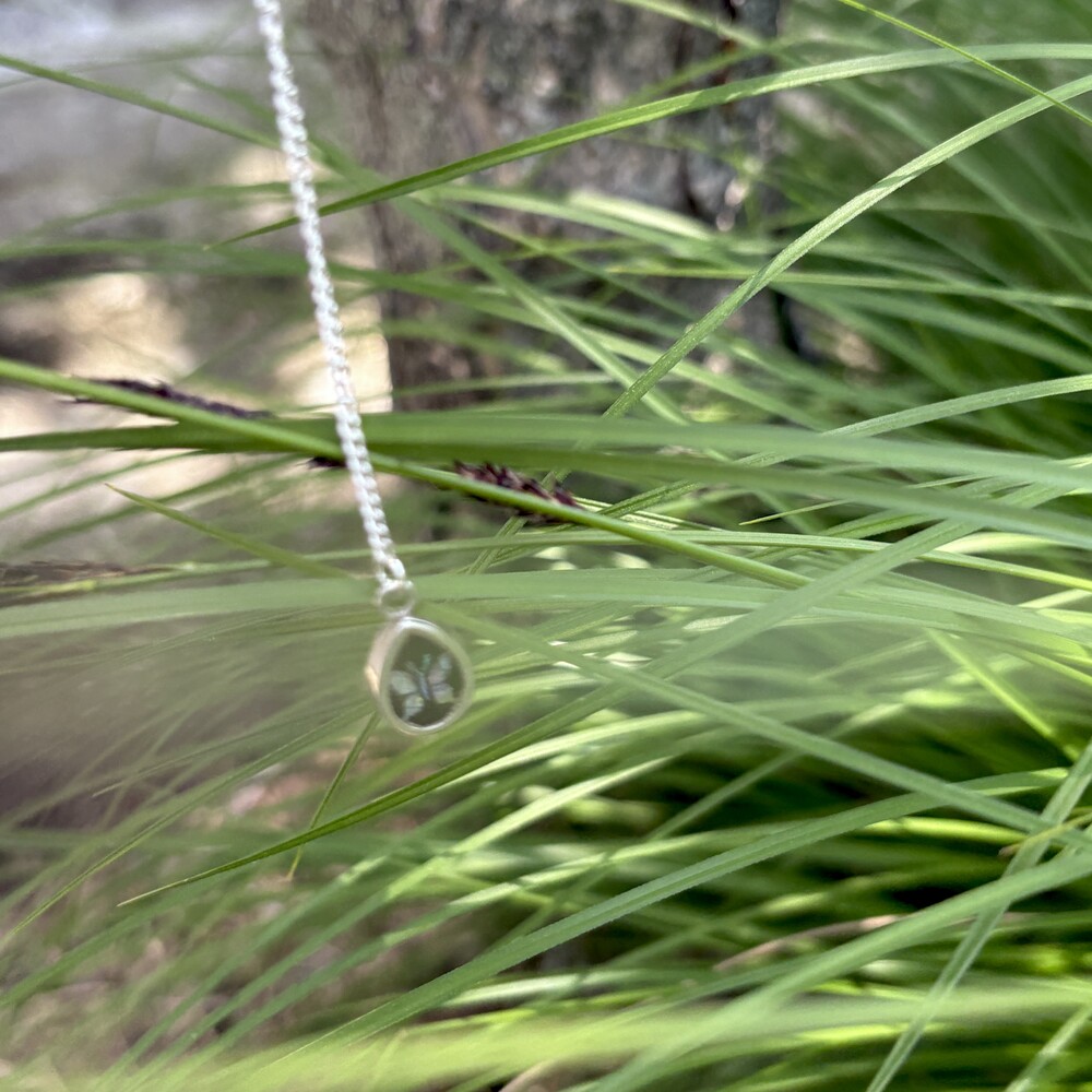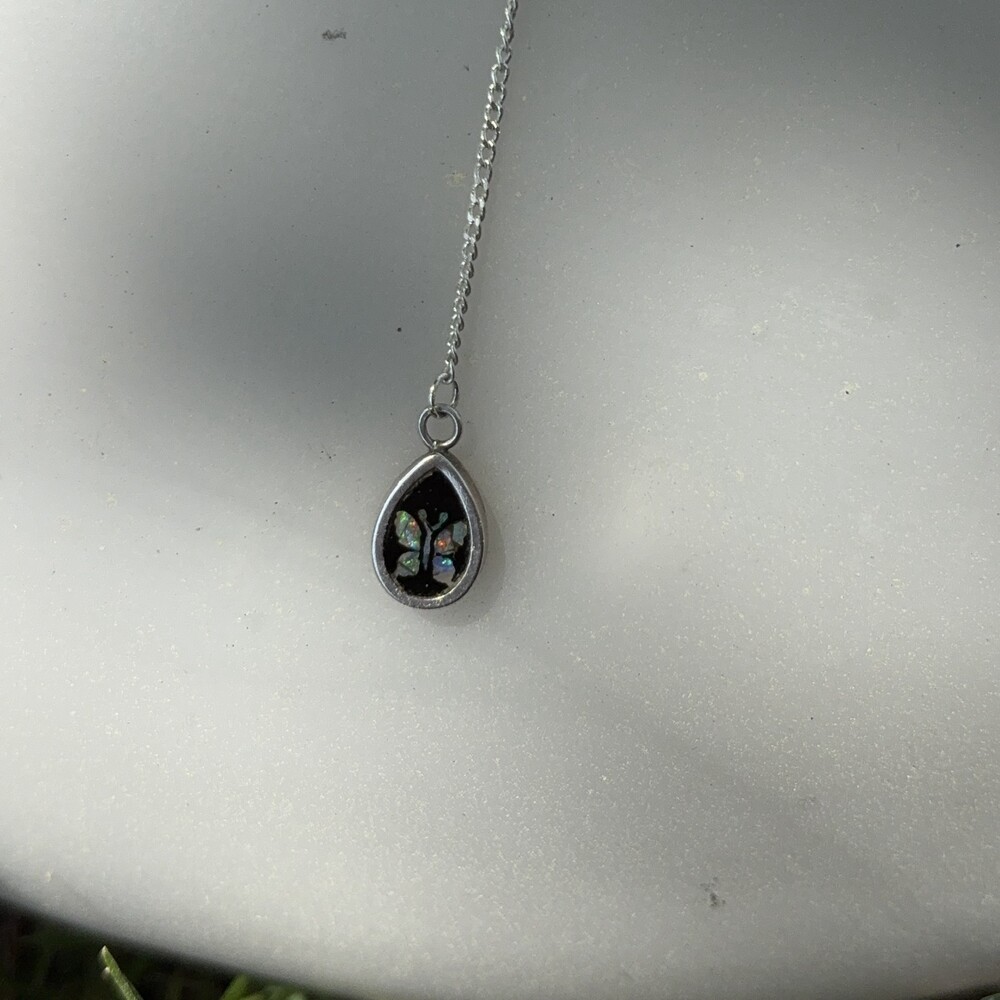 80's Vintage Sterling Silver Mother-of-Pearl Inlay Butterfly Necklace