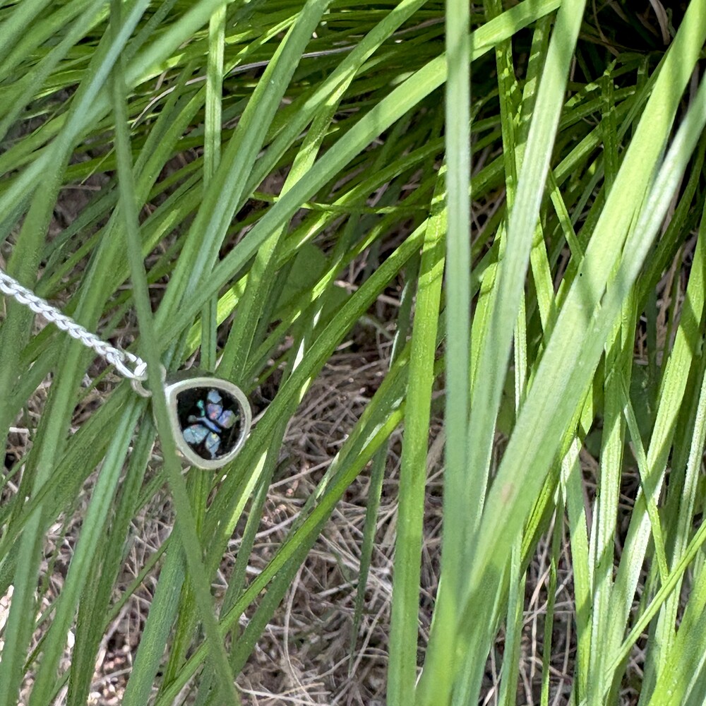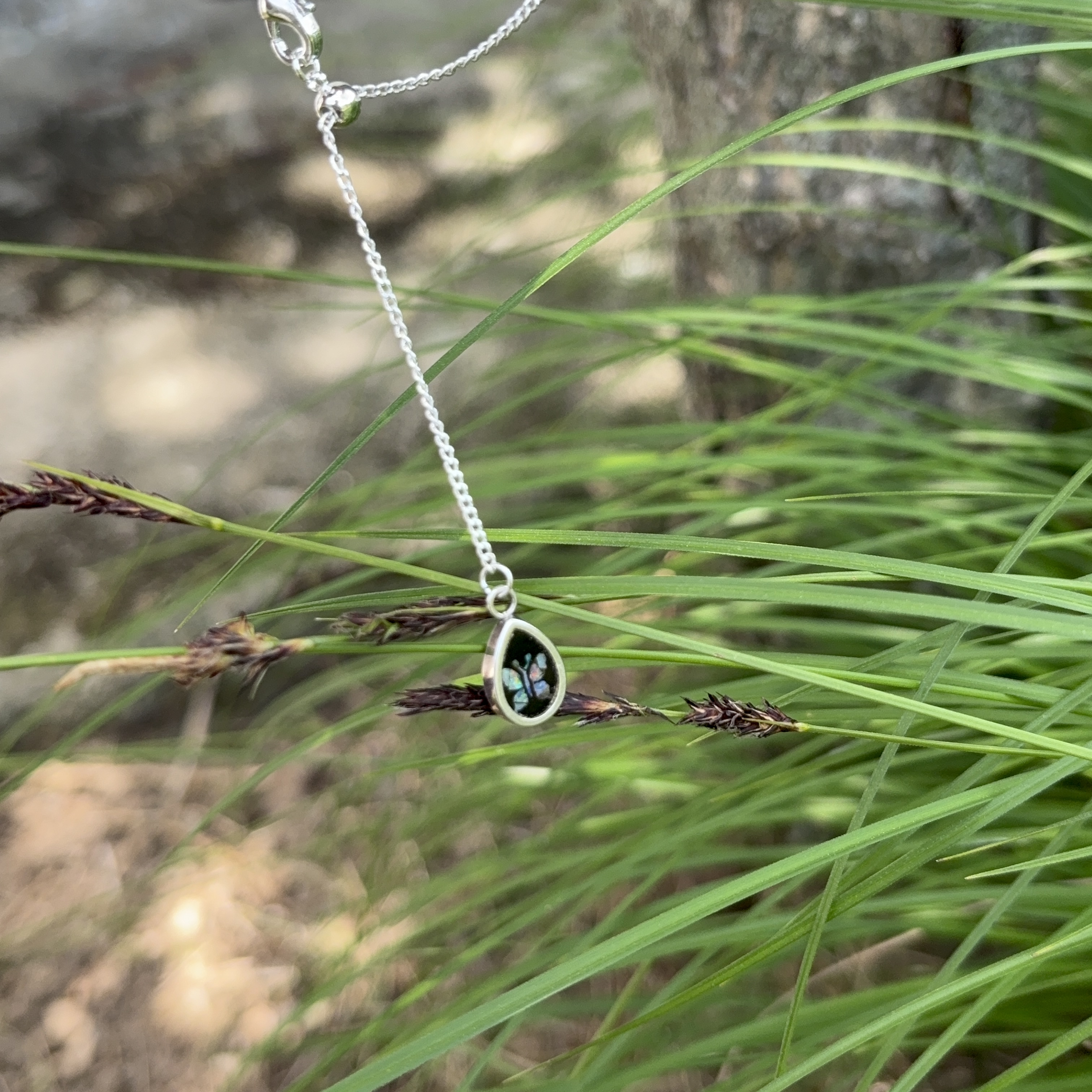 80's 빈티지 자개 버터플라이 펜던트 네크리스.